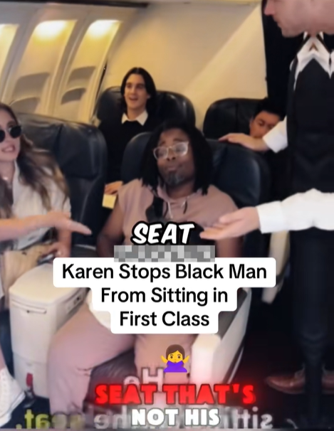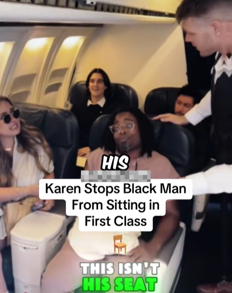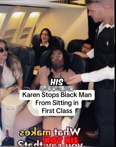 During a flight, tensions rose when a woman, often referred to as a “Karen,” confronted a Black passenger attempting to sit in his assigned first-class seat.