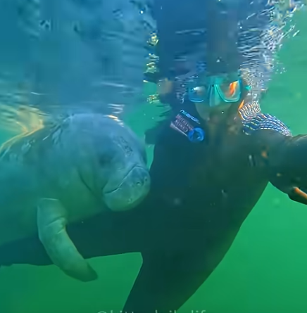 In another emotional moment, a baby manatee nestles into a diver’s arms, clinging with peaceful trust, as if it knew it was safe.