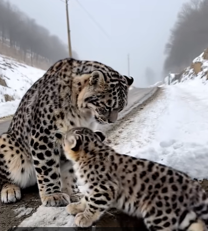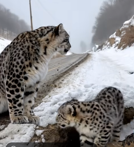 On a quiet mountain road, a man noticed something unusual — a distressed snow leopard pacing beside a deep crevice near the roadside.