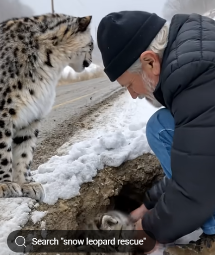 Moments later, he gently pulled out a tiny snow leopard cub, cold and clinging to life.