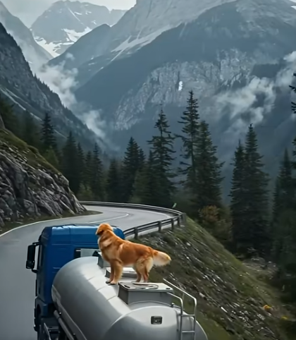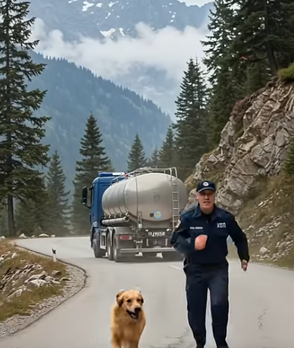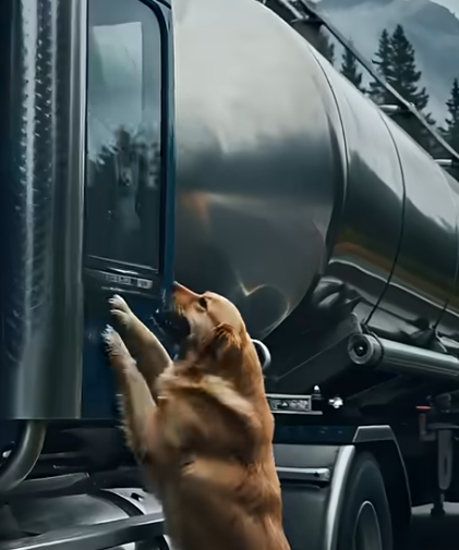Suddenly, the dog surged forward — and in a stunning moment, jumped onto the truck’s hood, then scaled the slippery tanker like a trained operative.