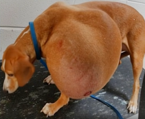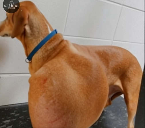 When rescuers first saw the dog, their hearts sank. A massive, unnatural swelling overtook the dog’s side, causing her to walk hunched and labored.