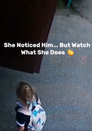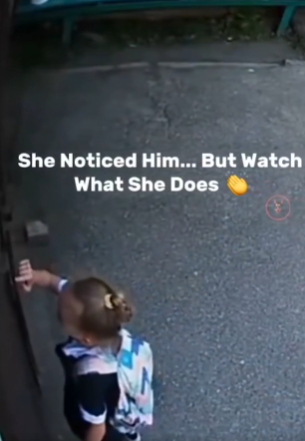 Instead of panicking, the little girl acted smart. Surveillance footage shows her quickly approaching a door, staying calm yet cautious.