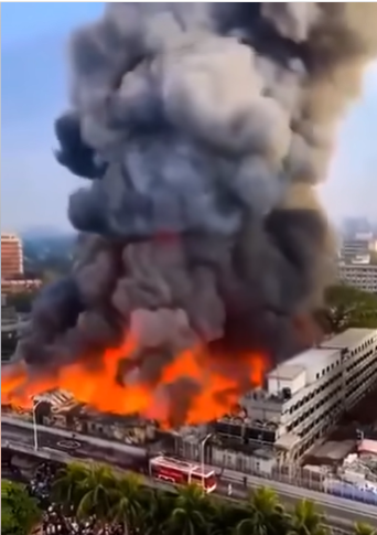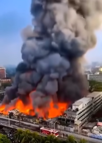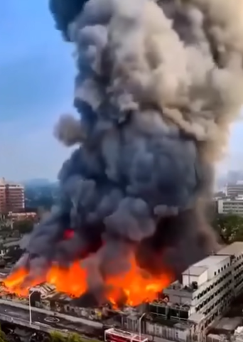 What once stood as a bustling hub now lies beneath flames and smoke, as firefighters work tirelessly to prevent further destruction.