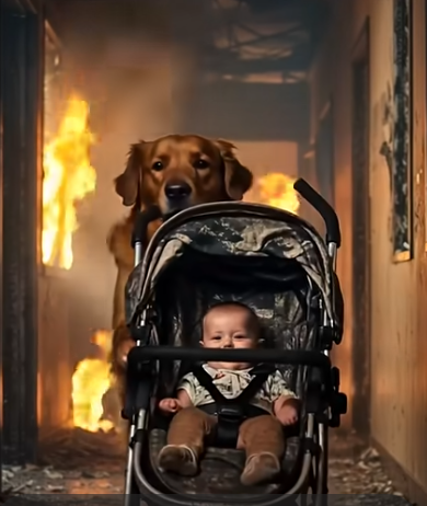 With smoke closing in, the flames roaring louder, the dog didn’t stop. He kept pushing until the baby was free of the building.