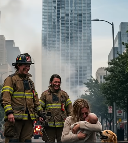 Light broke through the smoke as he burst from the exit, the baby held safely in his jaws. A moment that silenced the world.