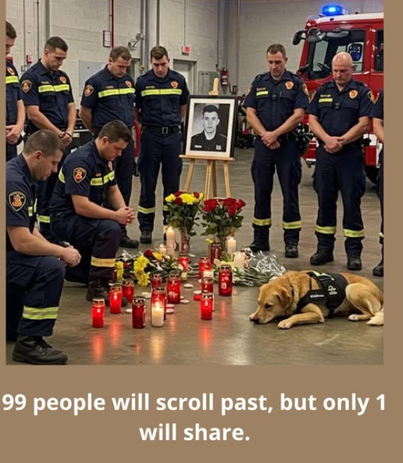In a quiet firehouse lit by the soft glow of candles, firefighters bow their heads—not in action, but in grief.