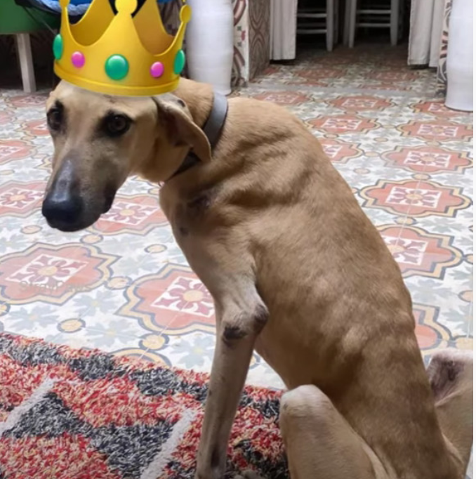 With a crown placed gently on his head, this once-abandoned dog is now treated like royalty.