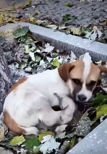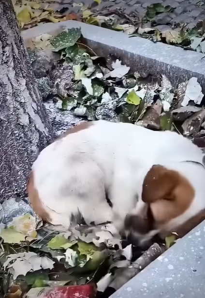 This sequence highlights the comfort and beauty of simple moments in nature, offering a glimpse into the dog’s quiet time in the midst of autumn’s vibrant leaves.