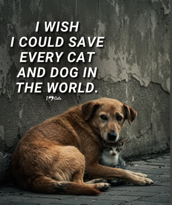 Every day, countless cats and dogs around the world face challenging circumstances, and this message highlights the universal desire to help and protect them.