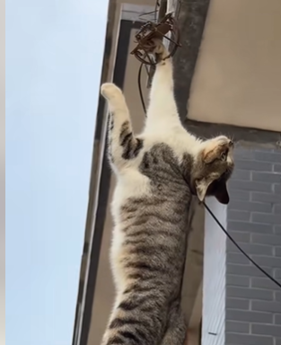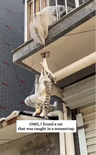 One day, a passerby spotted a heart-wrenching scene: a cat hanging precariously from a balcony.