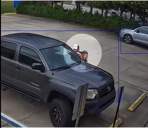 Security footage obtained from a nearby location shows two individuals by a truck, sparking speculation about their involvement.