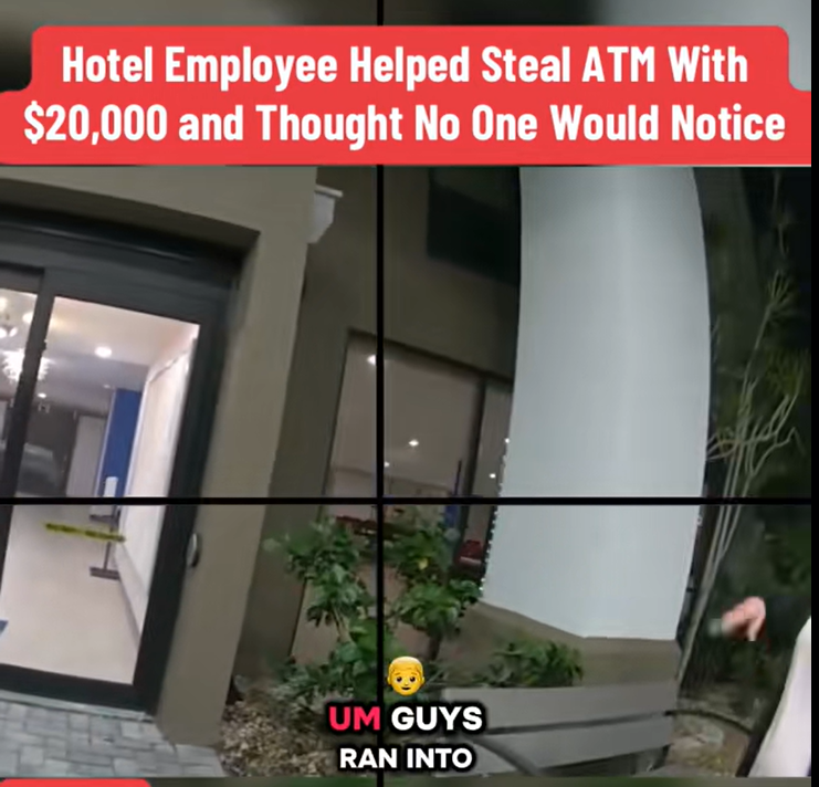 Authorities revealed shocking details after a hotel employee was discovered assisting thieves in stealing an ATM containing $20,000. Surveillance and