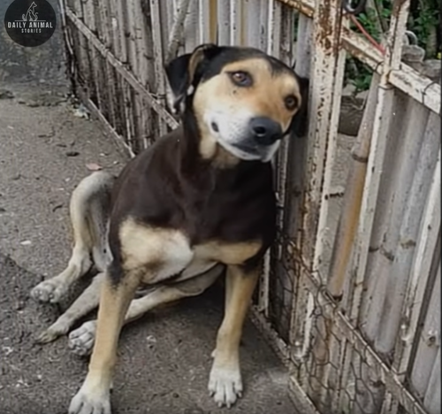 Max was found leaning against an old iron gate, his body weak and frail. He had been left behind, with