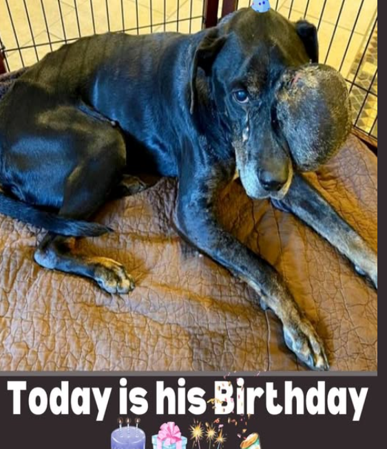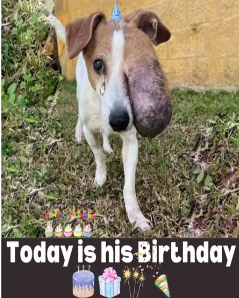 This little dog’s life has not been an easy one. Living with a large facial tumor, he carries a mark