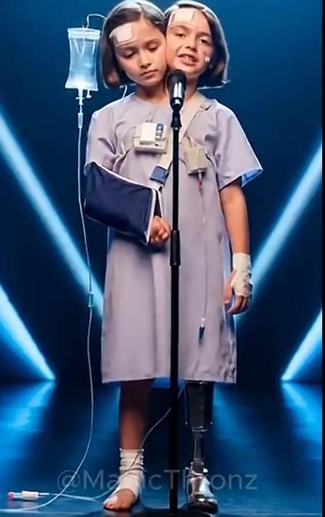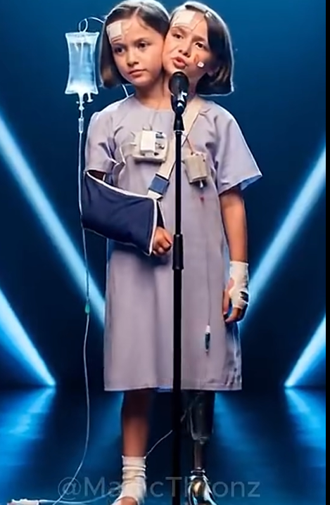 Under the soft glow of stage lights and the hum of medical monitors, two young conjoined sisters stood in front of a microphone—dressed in hospital gowns, bandaged, and visibly marked by their medical battles.