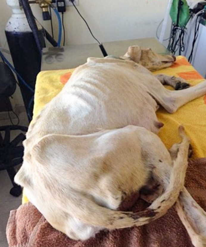 The dog was found in obvious distress, lying on a veterinary table awaiting treatment for her painful injury. Despite her condition, she appeared restless, attempting to rise and guide her rescuers somewhere important.