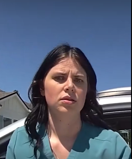 In a separate but related moment, a woman wearing medical scrubs was approached outside her vehicle.