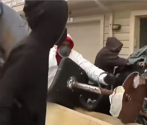 Teams in protective gear were seen removing trash, damaged furniture, and hazardous waste from the property.