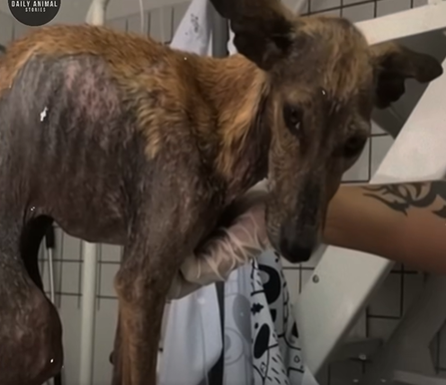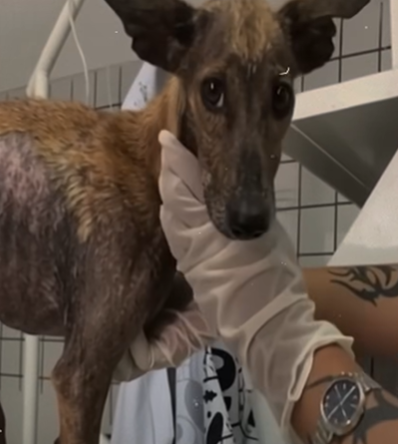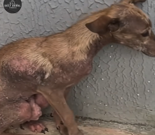 Her body was hairless, inflamed, and wounded—clear signs of neglect and abandonment.