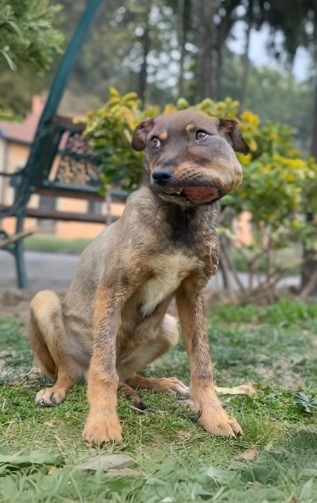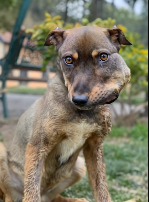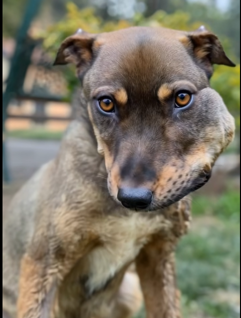 In the second photo, we get a closer look at the dog’s face.