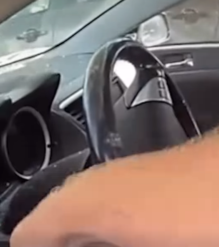 In the second image, the focus shifts to the steering wheel and dashboard area.