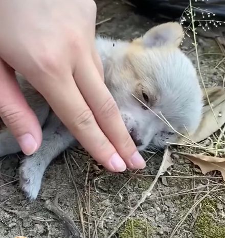 The rescuers, visibly shaken, quickly offered comfort, whispering softly and holding the pup in their hands.