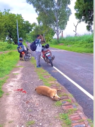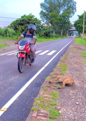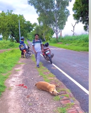 On the side of the road, a dog lies still — unnoticed by many, ignored by most.