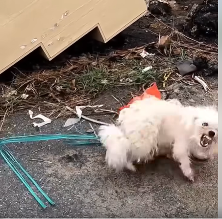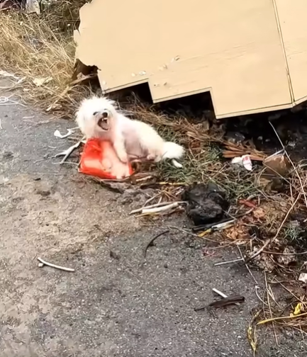 On a littered roadside, a small white dog stood her ground, barking and growling fiercely at anyone who came close. She wasn’t being aggressive out of malice—she was protecting something precious.