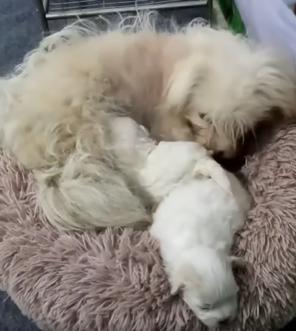 Thanks to compassion and patience, the little family was given a warm, soft bed. The once-defensive mother curled up beside her puppies, no longer needing to fight—only to love.