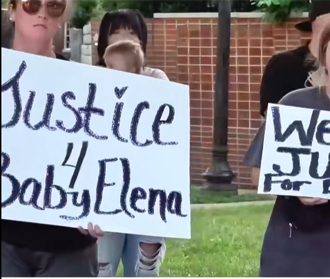 As protests continue and people rally for Baby Elena, signs bearing messages like “Justice for Baby Elena” are seen in the crowd, with many showing their support and anger.
