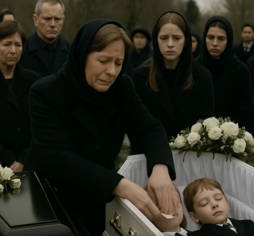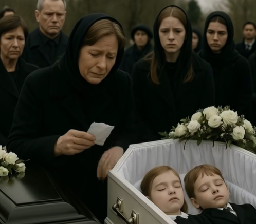 A grieving woman placed a gentle hand over their small chests, her face frozen in unbearable pain.